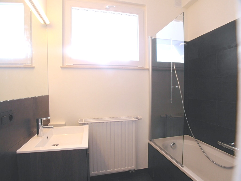 Grand hall, wc séparé, un balcon, salle de bain avec bain/douche, emplacement lave-linge.